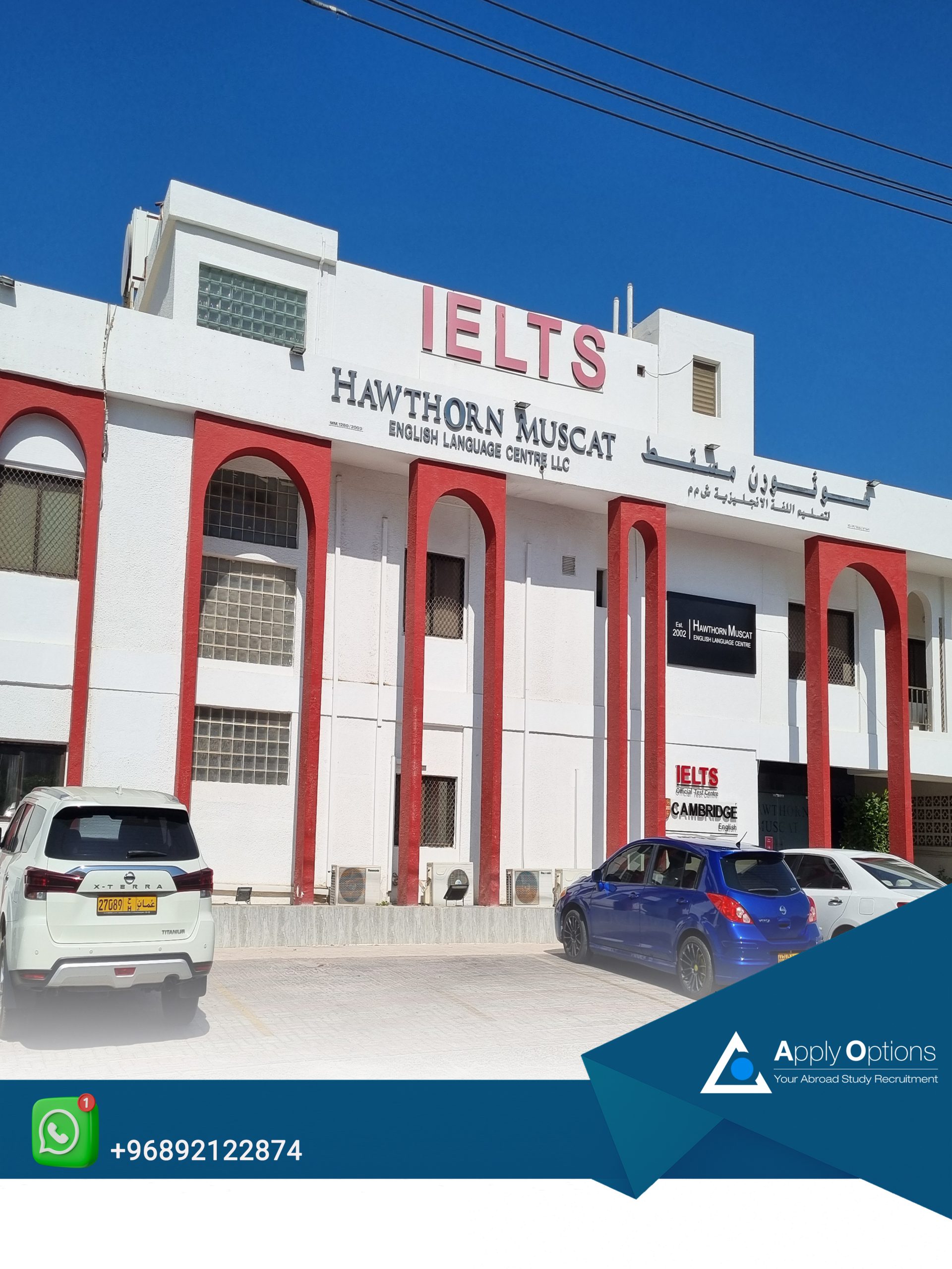 «Hawthorn Muscat English Language Centre» یکی از شناختهشدهترین مراکز آموزش و ارزیابی زبان انگلیسی در مسقط عمان است که هم بهصورت یک مؤسسه آموزشی خصوصی فعال است و هم بهعنوان مرکز رسمی برگزاری آزمون آیلتس تحت نظارت IDP شناخته میشود. به تجربه دیده شده این مرکز یکی از مراکز مناسب آزمون در شهر مسقط است و دانشجویان ایرانی زیادی تجربه این مرکز را در آزمون آیلتس داشته اند. این مرکز سالهاست دورههای متنوعی مثل General English، دورههای آمادگی IELTS، دورههای تخصصی مانند Business English و دوره معتبر CELTA برای تربیت مدرس زبان انگلیسی برگزار میکند و بهطور خاص برای دانشجویان، کارمندان دولت و متقاضیان مهاجرت و تحصیل در کشورهای انگلیسیزبان شناخته شده است.